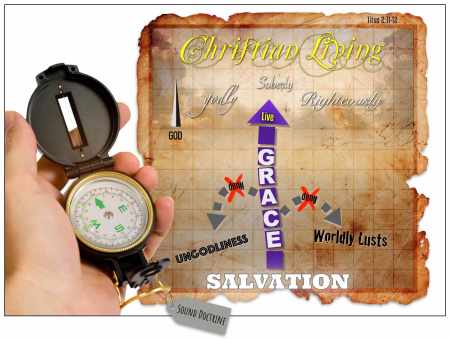 Grace GPS:Getting directions to Christian Living. … Starting from Salvation, with the grace of God, drive straight and continue on the narrow path for a lifetime with sobriety, righteousness, and godliness. Along the way, avoid ungodliness and worldly lusts, as you look for the blessed hope and glorious appearing of the great God and our Savior, Jesus Christ.